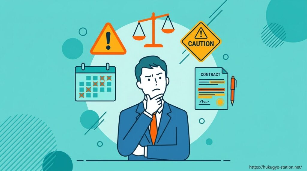 副業コンサルは自由度が高い一方で、本業との関係や情報の扱い方を誤るとトラブルにつながるリスクがあります。ここでは、実際に始める前に押さえておくべき具体的な注意点を整理していきます。
