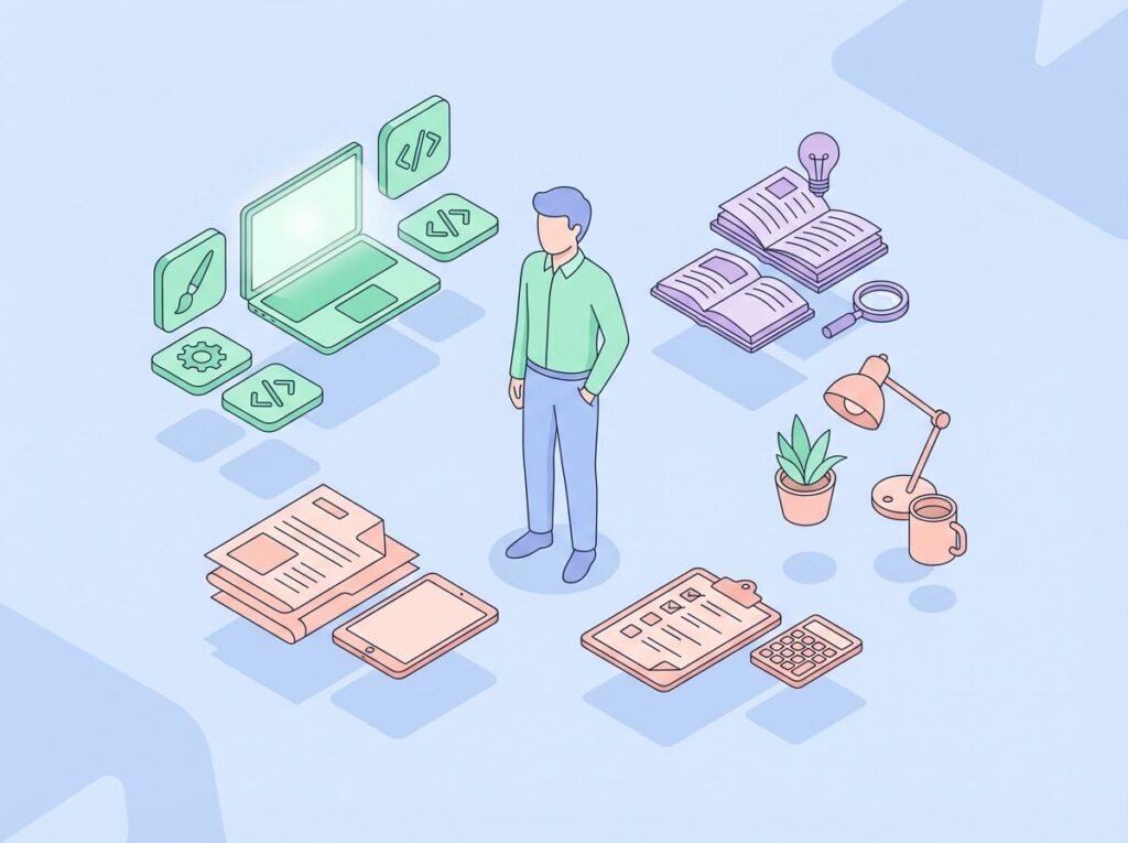 webデザインの副業は、知識をインプットするだけでは仕事につながりません。案件に応募する時点で「どんな制作物を作れるか」を示す資料が求められます。学習と並行して実績の土台を作らないと、準備期間だけが長くなります。始める前に整えておくべき具体的な準備を確認します。