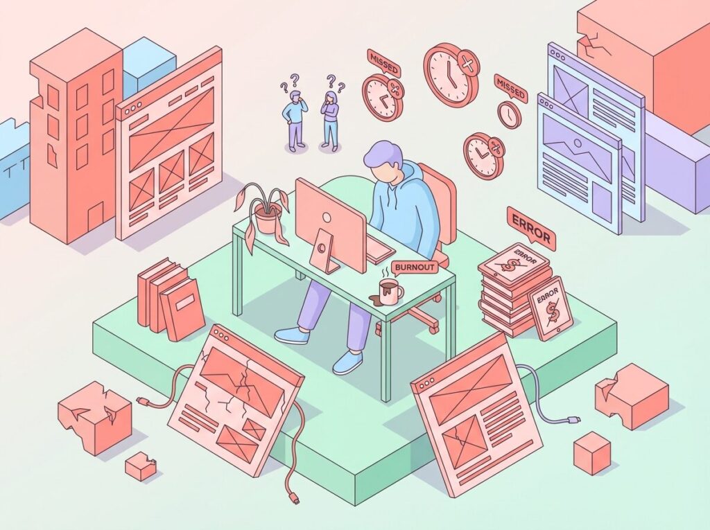 こうして計算してみると、本業後の限られた時間だけで制作・修正・営業を同時に回すのは簡単ではありません。どこかが圧迫されると、納期が遅れたり、提案数が足りなくなったりします。その結果、受注数が伸びず、売上も思うように増えません。