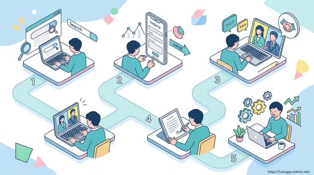 コンサル会社に相談する場合は、公式サイトの問い合わせフォームから現在のフォロワー数や直近30日間のインプレッション数を入力し、初回面談の予約を行います。初回面談は60分前後で実施され、月額100,000円〜300,000円程度のプラン内容と、月2回の面談や週1回のレポート提出といったサポート範囲が提示されます。