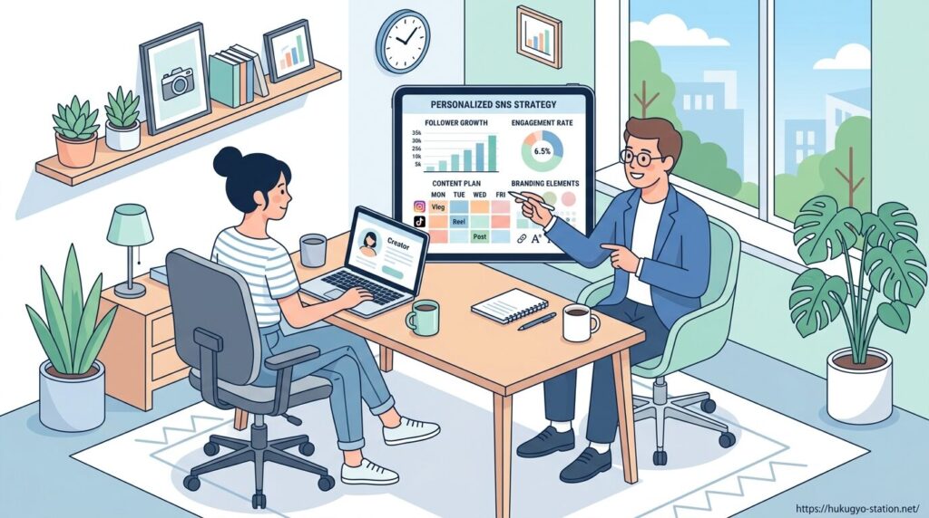 そこで注目されているのが、個人向けのSNSコンサルです。専門的な知識を持つコンサルタントに相談することで、自分のアカウントの課題が明確になり、何をどの順番で改善すればいいのかが具体的にわかるようになります。