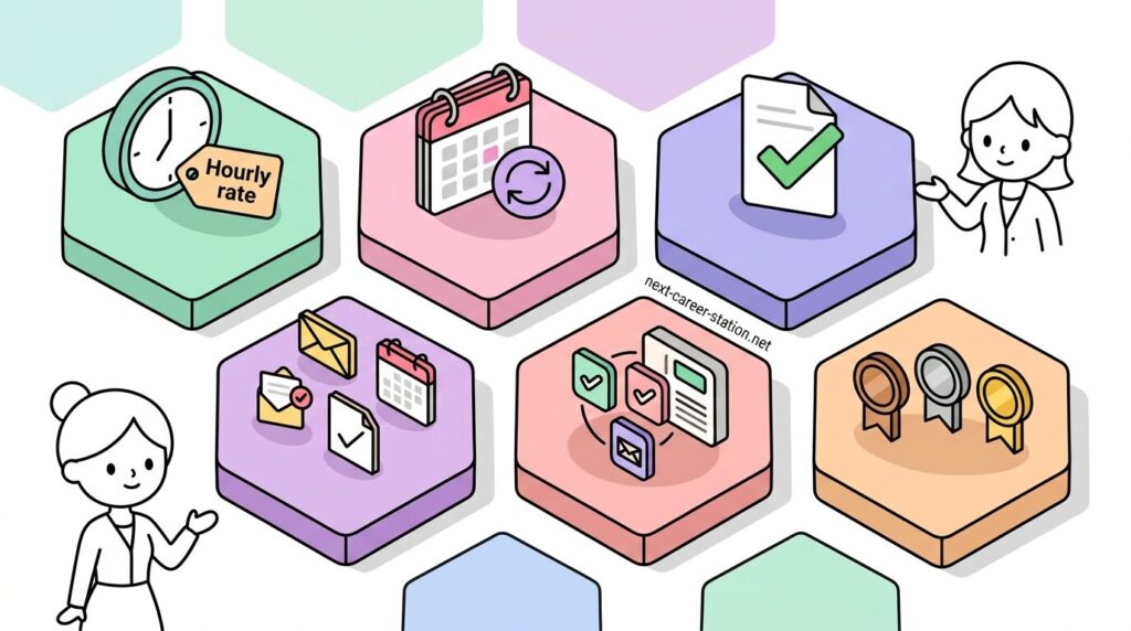 さらに、英語でのメール対応やWeb運用、マーケティング業務など専門スキルを持つ場合は2,500円〜3,000円まで単価が上がります。このように、対応できる業務の幅と専門知識のレベルが高いほど、1時間あたりの料金が段階的に高くなります。