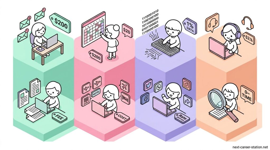 | 基本業務 | データ入力、メール対応、簡単な事務作業 | 1,200円〜1,800円 |
