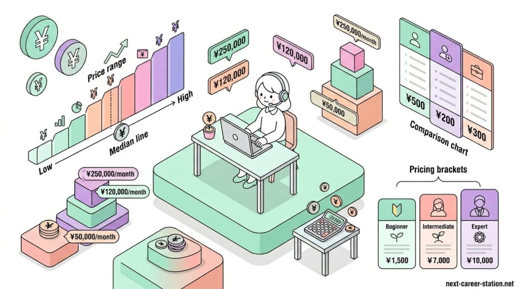 オンライン秘書の料金は、1時間あたり1,200円〜3,000円が基準となり、月額では15,000円〜120,000円の範囲で決まります。
