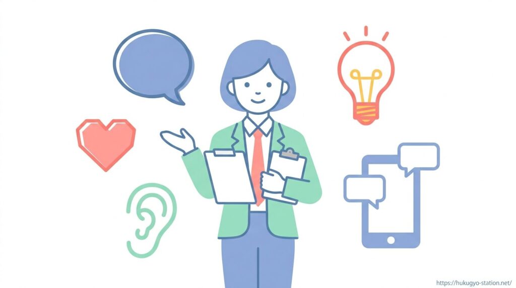 また、話を聞くだけで終わるのではなく、「じゃあ次はどうしたらいいか」を30分〜60分の中でやさしく整理して伝えられる人は、相談相手から頼られやすくなります。