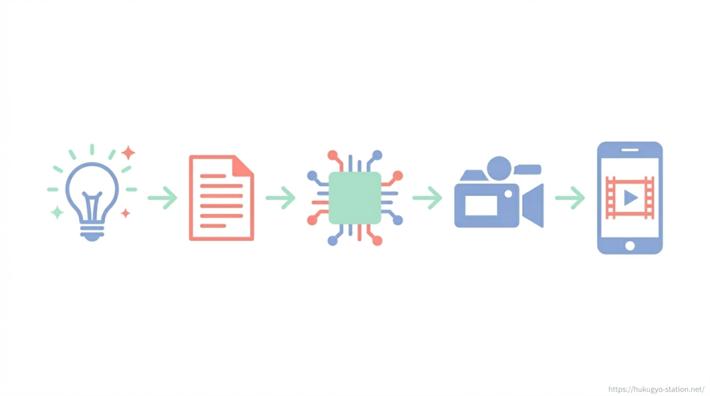 AIでリール動画を作るといっても、いきなりツールを開いて作り始めると、何から手をつければいいのか分からず手が止まりやすくなります。