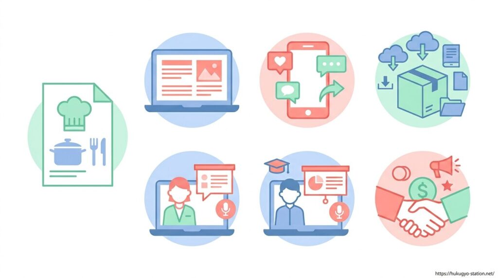料理レシピを副業として収益につなげる方法は一つではなく、どの媒体で発信するか、どの形で価値を提供するかによって収益の仕組みが大きく変わります。